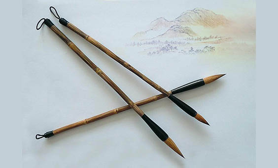 (4)兼毫。笔头是用两种刚柔不同的动物毛制成的。常见的种类有羊狼兼毫、羊紫兼毫,如五紫五羊,七紫三羊等等。此种笔的优点兼具了羊狼毫笔的长处,刚柔适中,价格也适中,为书画家常用。种类有调和式、心被式。